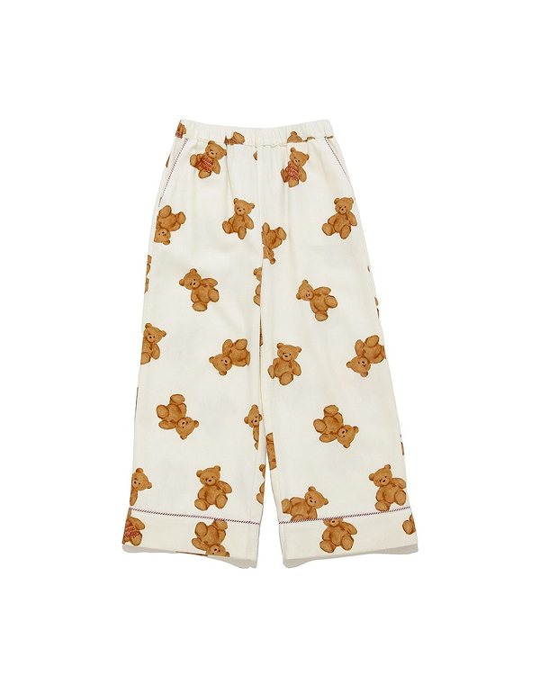 GELATO PIQUE KIDS BEAR PRINT FLANNEL LONG PANTS