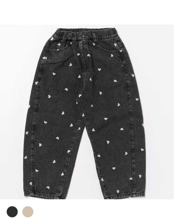BREEZE KIDS HEART PRINT EMBROIDERED BARREL PANTS 2COLOR