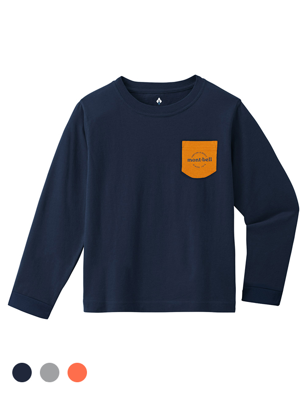 (140-160) MONTBELL KIDS COTTON LONG SLEEVE POCKET TEE 3COLOR