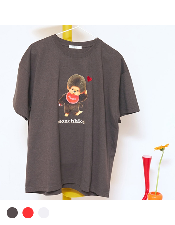 FREAKS STORE WOMEN MONCHHICHI FRONT AND BACK PRINT HEART EMBROIDERY TSHIRT 3COLOR