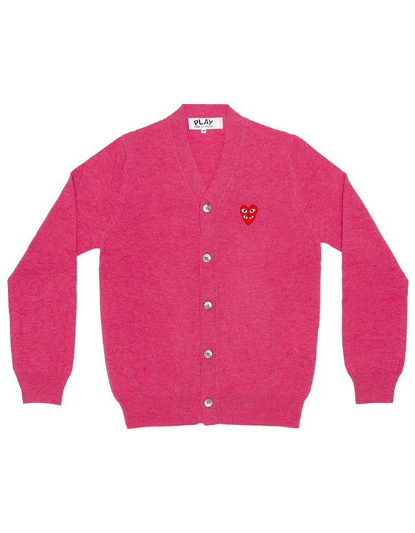 (MENS) COMME DES GARCONS PLAY DOUBLE RED HEART MENS CADIGAN (PINK)